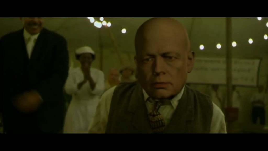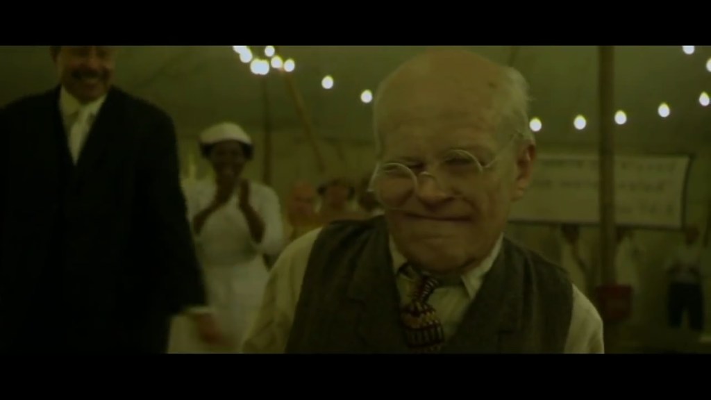 Đây là thử nghiệm đầu tiên cho Benjamin Button. Và ở đây, như các bạn có thể thấy, đó là một đầu người được tạo ra bằng máy tính – khá tốt – nó được gắn lên cơ thể của một diễn viên khác. Nó hiệu quả. Và nó làm cho các vị giám đốc điều hành xưởng phim an tâm hơn. Sau nhiều năm bắt đầu rồi lại tạm dừng dự án này, cuối cùng họ đã bật đèn xanh cho bộ phim. Tôi còn nhớ khi người ta gọi điện cho tôi để chúc mừng dự án được thông qua, tôi đã gập người xuống mà nôn. Đó thực sự là một quãng thời gian khó khăn.