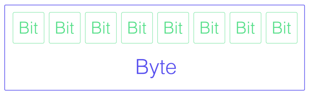 Một bit là một đơn vị thông tin nhị phân. Máy tính lưu trữ các bit dưới dạng 0 hoặc 1 và kết hợp chúng lại với nhau để lưu trữ các thông tin ngày càng phức tạp. Khi 8 bit được đặt chung với nhau, chúng tạo thành một byte. Chuyển đổi giữa hai đơn vị này rất dễ dàng. Để chuyển bit thành byte, chỉ cần chia số bit cho 8. Khi chuyển ngược lại từ byte sang bit, chỉ cần nhân số byte với 8. Dễ ẹc.
