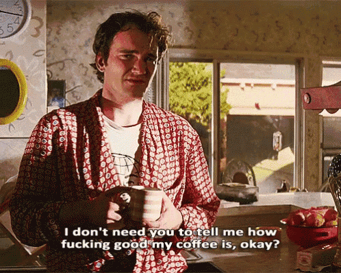Trong phim Pulp Fiction của Quentin Tarantino có đoạn, khi nhân vật Jules và Vincent chở xác của tên da đen vừa bị giết vào nhà Jimmie (do Quentin Tarantino đóng), Jimmie đã pha cà phê mời họ. Vừa uống hớp cà phê đầu tiên thì Jules đã phải thốt lên rằng cà phê của Jimmie ngon quá, đúng là hàng thượng đẳng. Jimmie ngay lập tức trả lời: “I don’t need you to tell me how fucking good my coffee is, okay. I’m the one who buys it. I know how good it is. I buy the gourmet expenses stuff because when I drink it I wanna taste it.” (Tao không cần mày nói cho tao biết cà phê của tao ngon đâu. Tao là người mua nó nên tao biết nó ngon cỡ nào. Tao mua hàng ngon vì tao thích cái vị của nó).